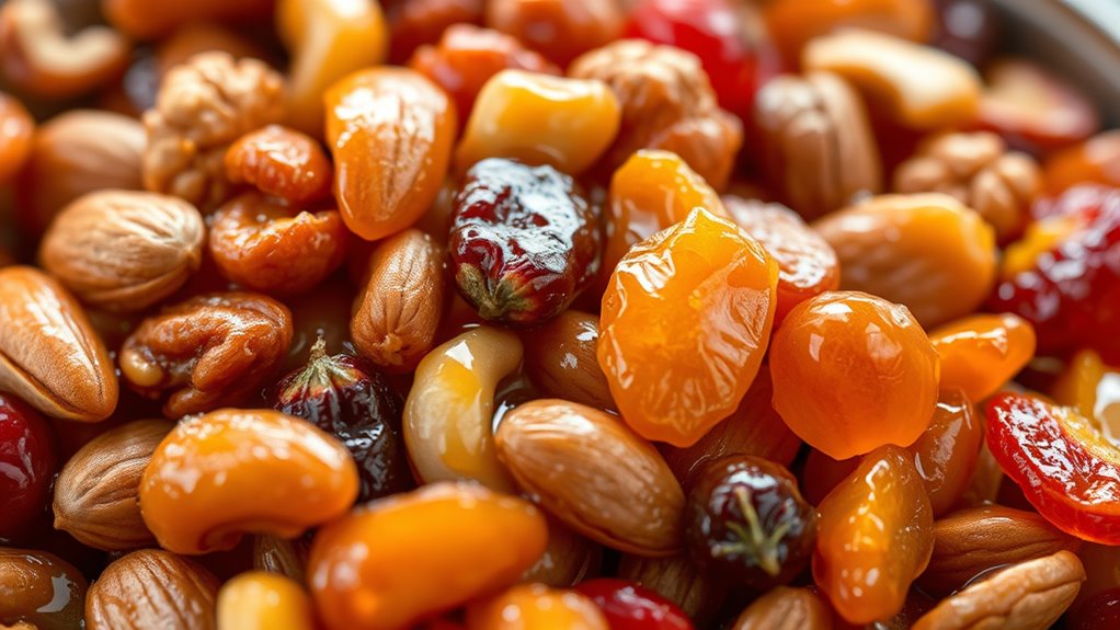 Denken Sie an Honig als eine goldene Schatztruhe voller Gesundheitsvorteile. Wenn Sie Nüsse und Früchte in Honig konservieren, entdecken Sie nährstoffreiche Vorteile wie gesunde Fette, Vitamine und Mineralien. Außerdem helfen die Antioxidantien im Honig, freie Radikale zu bekämpfen, was Ihr Immunsystem stärkt. Diese natürliche Konservierungsmethode verbessert nicht nur den Geschmack, sondern bietet auch einen gesunden Snack und verwandelt einfache Zutaten in eine nahrhafte Köstlichkeit, die Ihr allgemeines Wohlbefinden mühelos unterstützt.