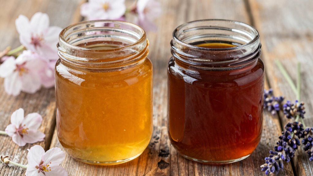 Der Geschmack von Blütenhonig variiert je nach Region, weil die lokalen Pflanzen, die Bienen für Nektar besuchen, den Geschmack, das Aroma und die Textur des Honigs direkt beeinflussen. Klima, Boden und die umgebende Umgebung prägen ebenfalls die Zusammensetzung des Nektars und schaffen so einzigartige Profile für jede Gegend. Zusätzlich wirken sich regionale Imkerpraktiken und der Erntezeitpunkt weiter auf die Eigenschaften des Honigs aus. Wenn Sie entdecken möchten, wie diese Faktoren zusammenwirken, um unterschiedliche Honigsorten zu erzeugen, bleiben Sie neugierig.