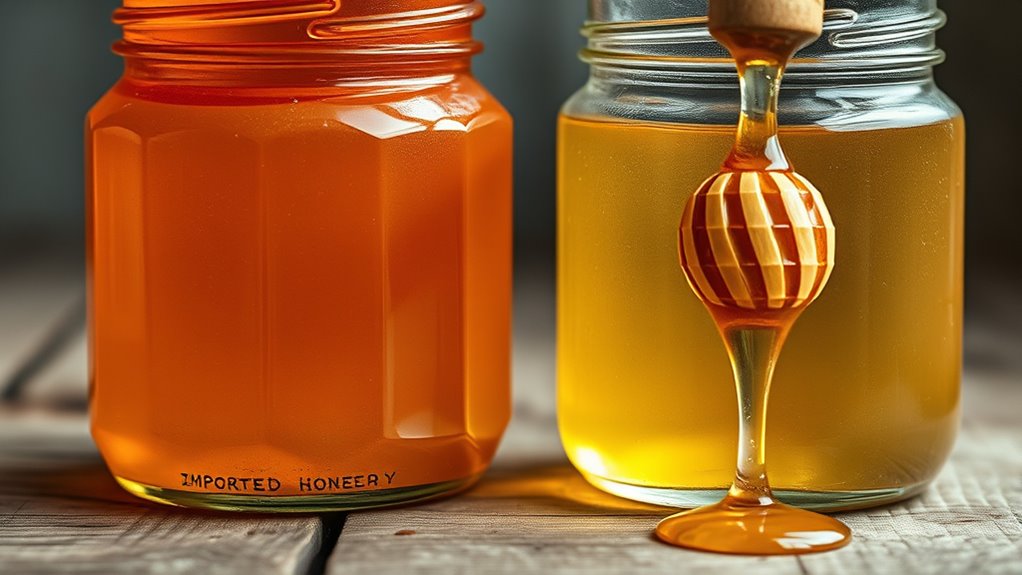 Deutscher Honig bietet im Allgemeinen eine höhere Qualität und Transparenz, da er unter strengen Vorschriften produziert wird, mit klarer regionaler Kennzeichnung und weniger Schadstoffen. Importierter Honig kann sehr unterschiedlich sein; er stammt möglicherweise aus weniger regulierten Ländern, enthält Zusatzstoffe oder wird aus mehreren Quellen gemischt, was es erschwert, die Reinheit zu überprüfen. Wenn Sie vertrauenswürdige, nachhaltige Optionen mit authentischem Geschmack bevorzugen, ist deutscher Honig oft die bessere Wahl. Erkunden Sie weiter, um zu entdecken, wie diese Unterschiede Ihre Auswahl auf dem Teller beeinflussen.