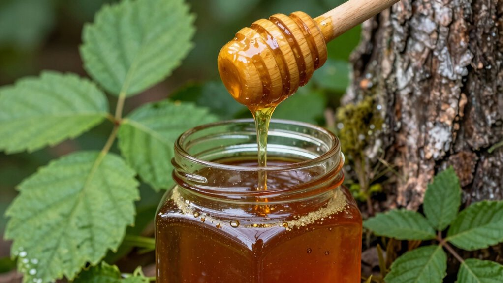Du wirst feststellen, dass Waldhonigs Geschmack durch Bienenverhalten und Landschaftseinflüsse geprägt ist. Das Sammelverhalten der Bienen, beeinflusst durch die Vielfalt der wilden Pflanzen und Bäume, sorgt für malzige oder harzige Noten. Zusätzlich tragen die einzigartigen Pflanzenwelt und Umweltbedingungen der Landschaft zu seinem komplexen Geschmack bei, wodurch jede Charge einzigartig wird. Daher beeinflussen die Bienenaktivität und die Landschaftsmerkmale direkt, ob dein Waldhonig malzig, harzig oder irgendwo dazwischen schmeckt.