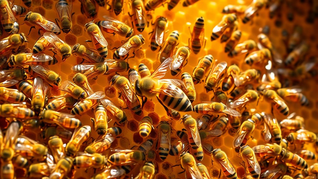 Jetzt, da du verstehst, wie Bienen eine neue Königin aufziehen, stell dir vor, du beobachtest eine winzige Larve, die sich in ihrer Wachsform verwandelt, sorgfältig gefüttert, um Königin zu werden. Es ist wie ein Wunder der Natur—wie der Schwarm die zukünftige Königin mit Präzision und Sorgfalt nährt und formt. Dieser Prozess geht nicht nur um Fortpflanzung; er ist eine Verkündung des unglaublichen Teamworks und Instinkts, die den Bienenstock lebendig halten. Wirklich, es ist ein Meisterwerk der Natur in Aktion.