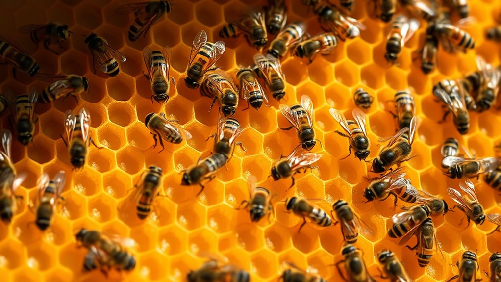 Bienen produzieren Wachs aus Drüsen an ihrem Hinterleib, das winzige Wachsplättchen bildet, die sie kauen und zu hexagonalen Waben formen. Diese Waben dienen mehreren Zwecken, wie der Lagerung von Honig, Pollen und der Aufzucht von Brut. Ein korrektes Wachsaufbau ist essenziell für die Stärke und Gesundheit des Bienenstocks. Faktoren wie der Platz im Bienenstock, Belüftung und Bienengesundheit beeinflussen die Wachsproduktion. Bleiben Sie dran, um zu erfahren, wie die Steuerung dieser Faktoren die gesunde Wachsbildung und die allgemeine Produktivität des Bienenstocks unterstützt.