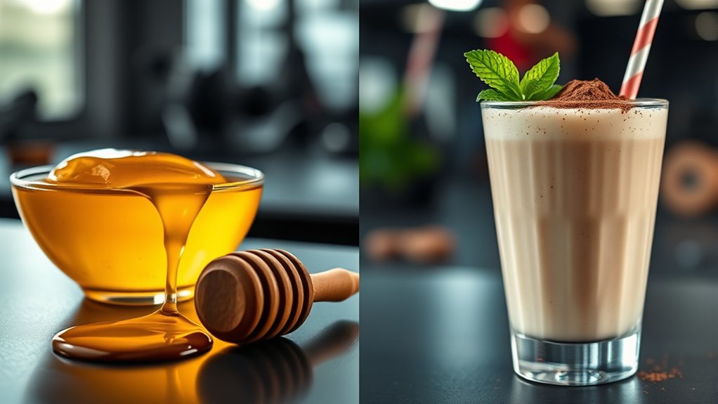Nach dem Training sorgt Honig dank seiner Zuckerzusammensetzung und seines niedrigen glykämischen Indexes schnell für die Wiederauffüllung der Glykogenreserven, was eine stetige Energieversorgung ohne Abstürze ermöglicht. Proteinshakes liefern wichtige Aminosäuren für Muskelreparatur und -wachstum, die im post-exercise Fenster rasch aktiviert werden. Die Kombination beider unterstützt die Insulinreaktion, fördert die Muskelsynthese und reduziert Muskelkater. Um die Regeneration zu optimieren, ist es hilfreich zu verstehen, wie Honig und Protein zusammenwirken. So kannst du deine Erholung verbessern – bleib dran, um mehr darüber zu erfahren, wie du deine Ernährung nach dem Training maximieren kannst.