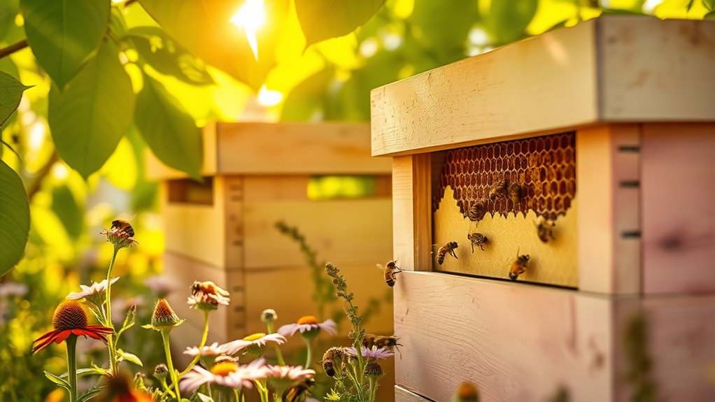Ökologische Bienenhaltung, auch Bio-Bienenhaltung genannt, bedeutet, die Gesundheit der Bienen und die Umwelt zu priorisieren. Dabei werden natürliche Methoden eingesetzt, um Schädlinge und Krankheiten zu bekämpfen, wobei synthetische Chemikalien und Zusätze vermieden werden. Bienenstockdesigns ahmen natürliche Lebensräume nach, sodass Bienen frei Waben bauen und natürlich gedeihen können. Dieser Ansatz fördert resiliente Völker, unterstützt lokale Ökosysteme und produziert reinen Honig. Wenn Sie verstehen möchten, wie diese Praktiken sowohl den Bienen als auch der Umwelt zugutekommen, gibt es noch mehr zu entdecken.