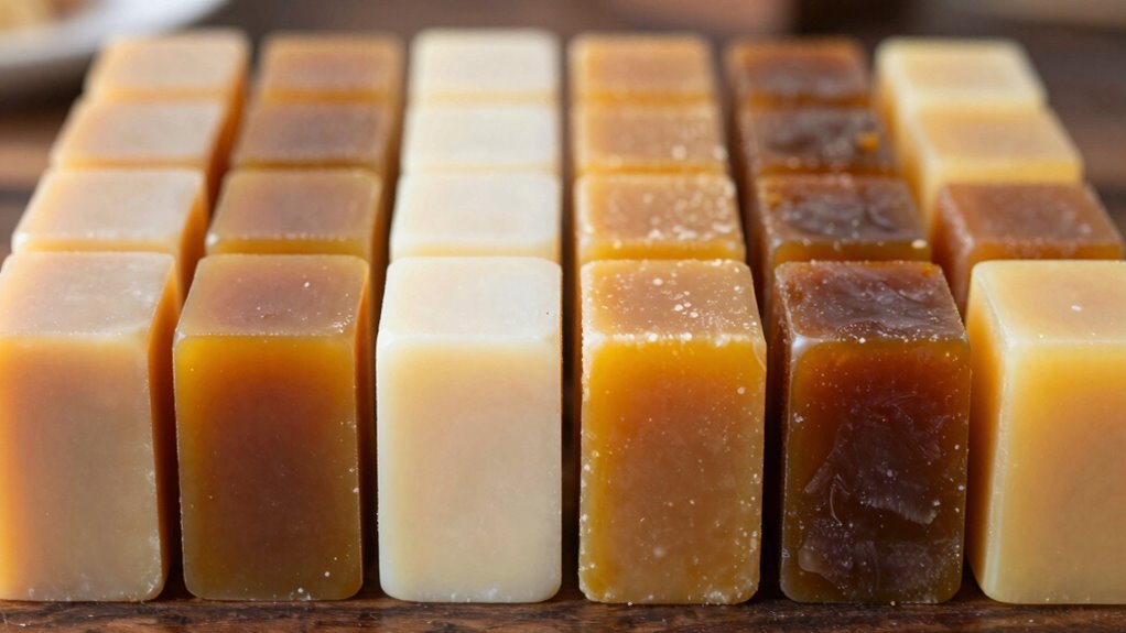 Deine Sinne sind wie ein Detektivausrüstung, die aufdecken, wie Erntelocation die Wachsblock-Duftnote und Farbe beeinflusst. Regionale Unterschiede, die durch lokale Erntetechniken geprägt sind, wirken sich auf das Aroma und die Farbe des Wachses aus. Zum Beispiel produzieren Bienen in blütenreichen Gebieten Wachs mit einem süßeren Duft und lebendiger Farbe, während diejenigen in eher zurückhaltenden Regionen helleres Wachs liefern. Umwelt und Erntemethoden arbeiten Hand in Hand und schaffen einzigartige Eigenschaften, die die Geschichte jedes Ortes erzählen.